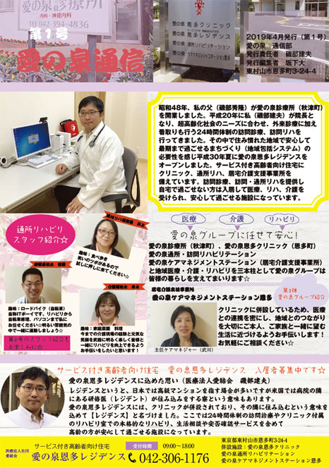 愛の泉診療所についてや愛の泉恩多レジデンス、通所リハビリテーションのお知らせ、そのほか健康のことや季節柄のトピックなど定期的に発信してまいります。